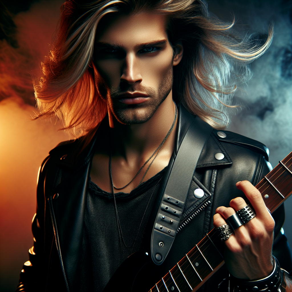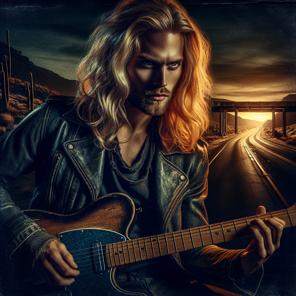 Ash Ravenclaw is the long-haired lead guitarist of Raven Blackthorne's legendary band—a golden-maned warrior whose fingers bleed lightning across fretboards. Born in the neon-lit ruins of a forgotten desert highway, he channels the ghosts of outlaw rock through walls of distortion and apocalyptic solos. His guitar is both weapon and sacrament, forged in chrome and shadow, screaming hymns for the damned and the defiant.