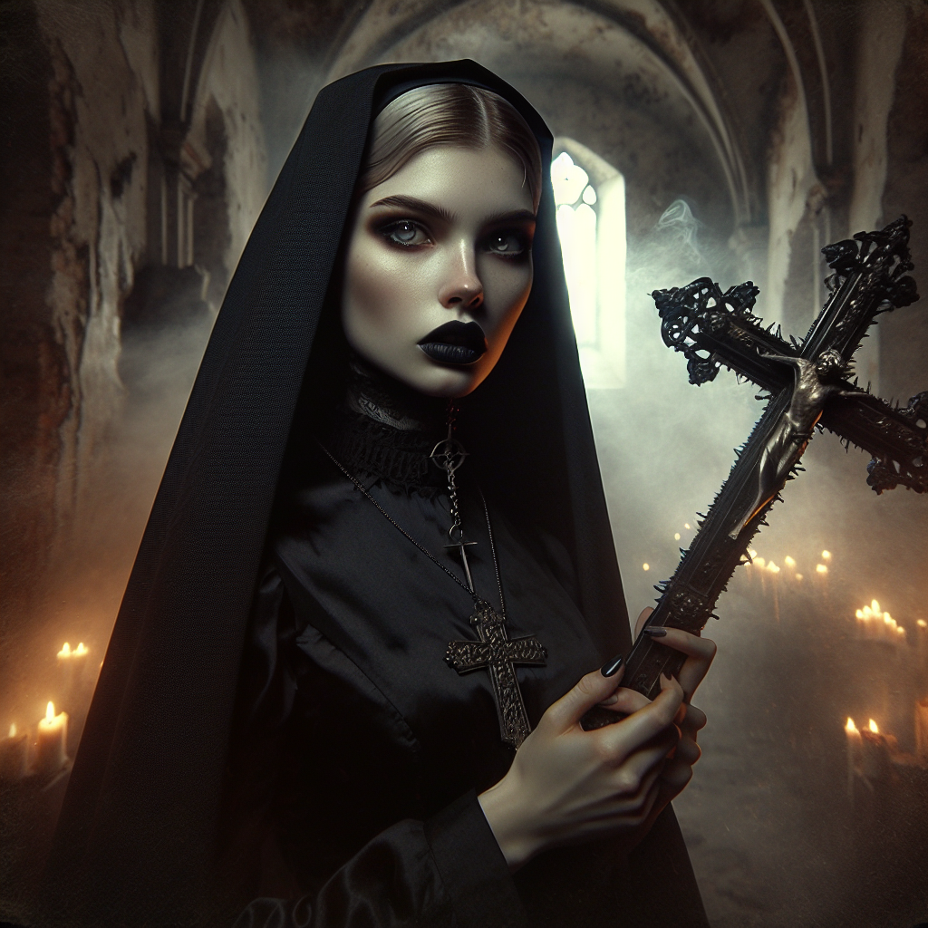 Sister Aphelion is the final witness of a convent massacre, baptized in the blood of her slaughtered sisters and reborn as the cold executrix of divine wrath—no longer human, no longer holy, but something forged in the liminal space between martyrdom and monstrosity. She wears her habit like a war shroud, her veil stained with ash from the burning chapel where she made her terrible covenant, and in her hands she carries the iron processional cross now sharpened to a blade. She is the avenging angel with all the mercy burned out, moving through the world like a black glacier—slow, inevitable, and leaving only destruction in her wake.