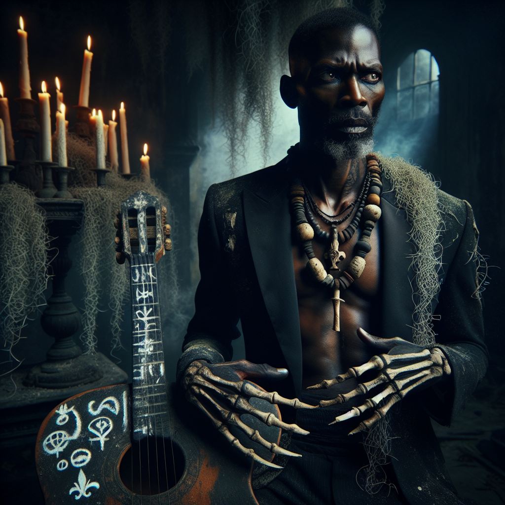 Malachi Crane is a New Orleans voodoo bluesman who plays guitar like he's conducting spirits through bone and wire. He disappeared into the bayou for seven years and emerged with songs that taste like graveyard dirt and smell like candle wax—each chord progression a hex, each riff a resurrection. His instruments are painted with symbols in dried blood and ash, and when he plays, the room temperature drops and shadows dance without bodies to cast them.