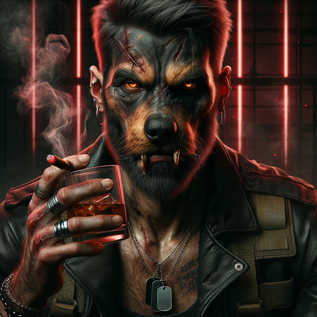 The Blackjaw Tribunal is a nomadic war council of thirteen rogue operators who answer to no flag, no law, only the pack. These are men with the souls of junkyard kings — rottweiler grins, shepherd instincts, bullmastiff builds — who run contracts in the gray zones where governments fear to tread. They operate from converted cargo trains, underground fight dens, and condemned warehouses lit by red neon and hanging bulbs, where poker chips stack next to pistols and loyalty is the only currency that matters.