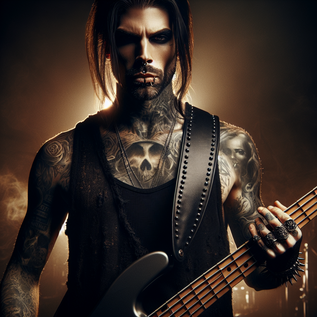 Vex Ironwood is the low-end architect of chaos — a bass player whose four strings hold more menace than most men carry in their entire lives. Covered in outlaw ink from knuckles to collarbone, he stands like a shadow given weight, his jet-black bass slung low across leather and denim, fingers moving with surgical violence across frets worn smooth by years of dive bars, back-alley venues, and stages that smelled like sweat and gasoline. He doesn't perform — he anchors, a dark pulse that makes hearts sync to his rhythm whether they want to or not, eyes cold as winter steel, presence heavy as a storm rolling in.