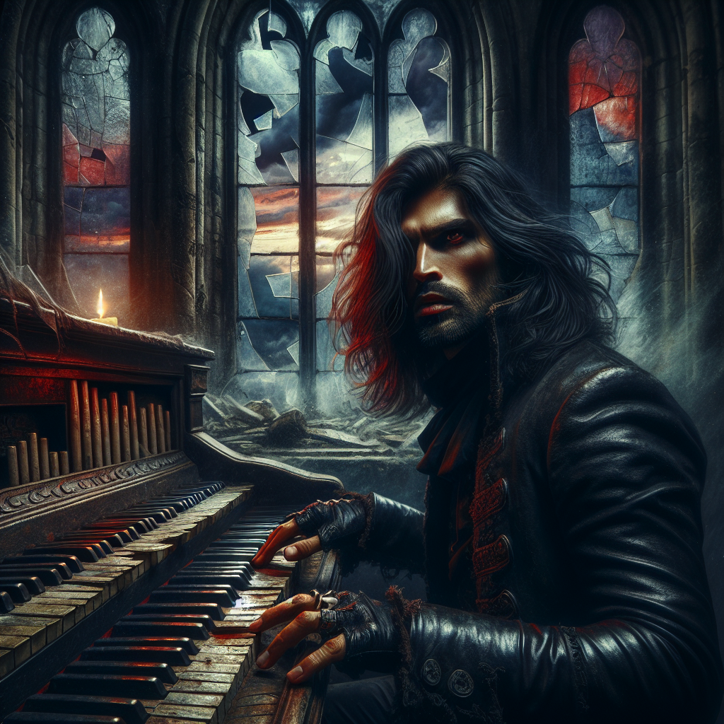 Matthias Vane is a black-clad prophet of the damned keys — a long-haired warlock whose fingers move across piano, pipe organ, and synthesizer with the unholy grace of something summoned rather than learned. They say he found his gift in the belly of a collapsed cathedral deep in the Appalachian hollow, where he played a broken organ until the stones wept and something ancient answered. Now his music doesn't just fill rooms — it possesses them, dragging forth buried grief, old violence, and spirits that should have stayed sleeping.